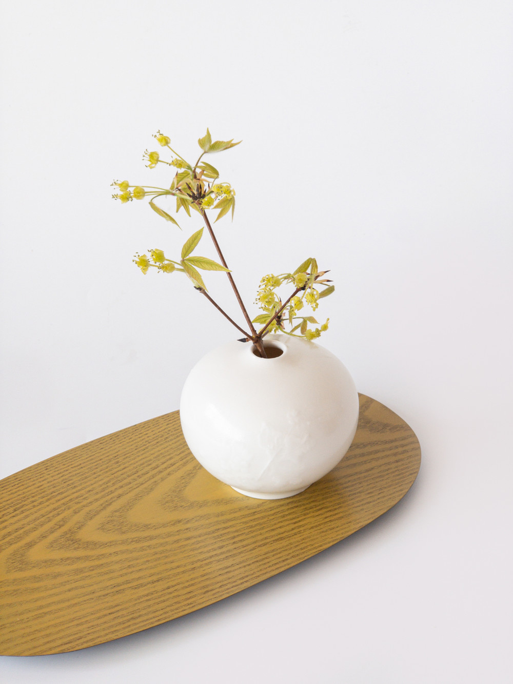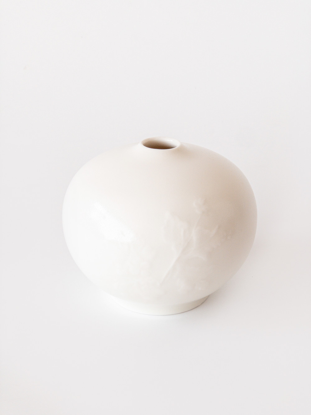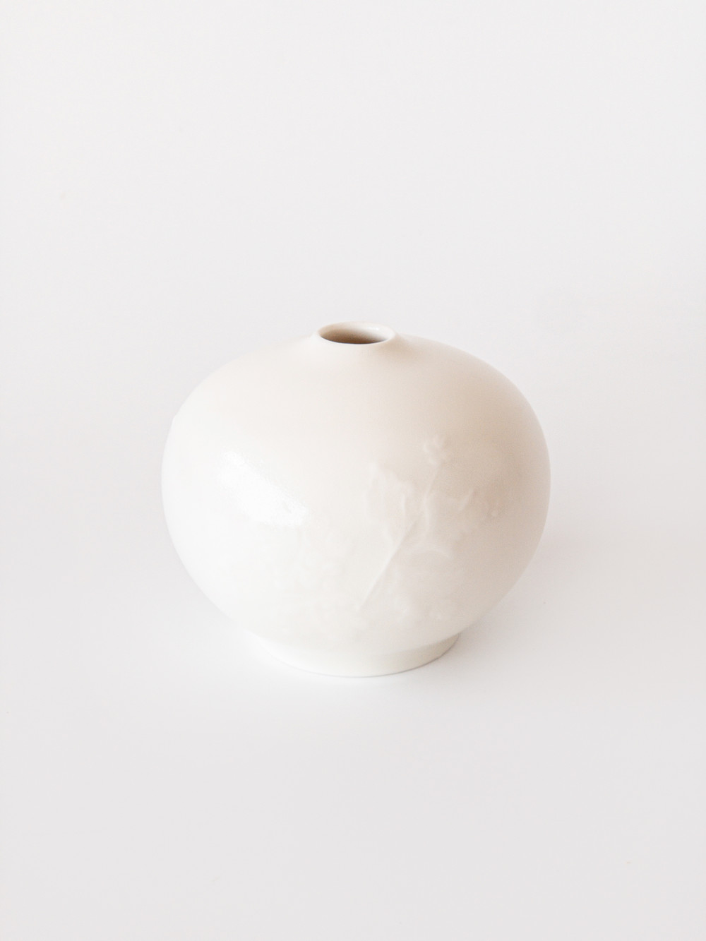박혜성 작가의 애기똥풀의 부조가 들어간 미니 화병입니다. 단아하고 부드러운 곡선이 마치 차오른 달을 떠오르게 합니다. 은은한 광택감이 도는 차분하고 고급스러운 백자입니다. 잎모양이 동그랗게 귀여운 애기똥풀은 꽃보다 잎에게 더 눈이 갑니다. 침실 머리 맡, 책상 위 등에 가까운 곁에 두고, 화병 위에 소담하게 피어난 풀을 감상해보세요.