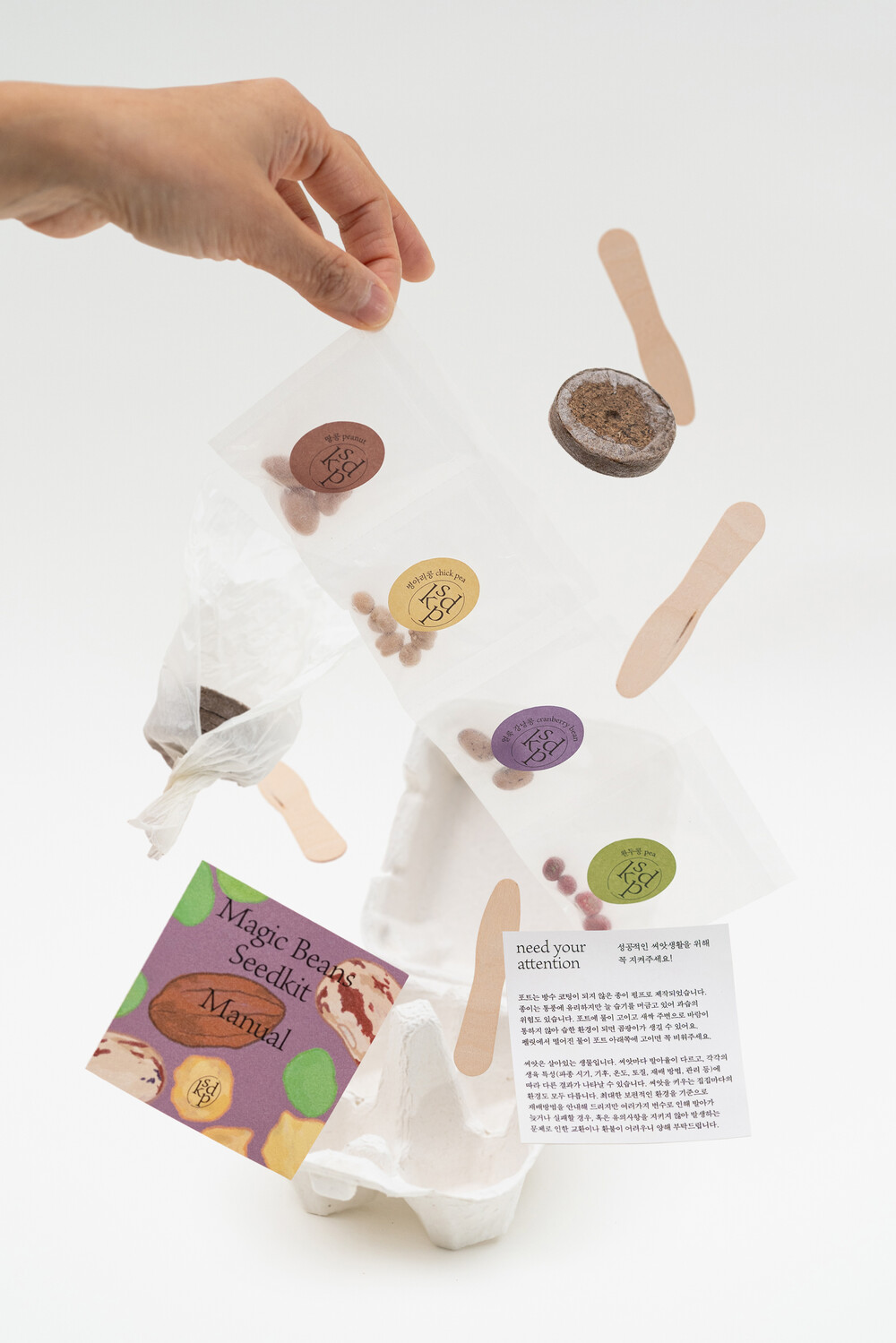 콩 4종을 구분할 수 있도록 이름표를 만들 수 있는 나무 막대를 함께 넣어드립니다. 나무 막대는 이름표 뿐만 아니라 콩 파종 시에 펠릿의 흙을 덜어내는 용도로도 유용하게 사용할 수 있습니다.