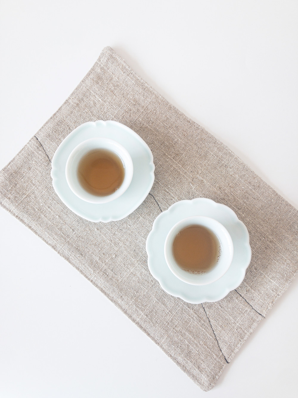 손세은 작가는 조선시대 유물인 ‘청화 백자 망우대(忘憂臺: 근심을 잊는 받침) 잔 받침’을 모티브로 조선백자의 고유한 조형의 선과 색감을 재해석하여 다기세트를 제작합니다. 우리는 일상에서 각자의 휴식처를 찾습니다. 어디든 마음을 놓고 차 한 잔 마실 수 있는 곳이 있다면 그 공간이 자신만의 망우대가 되었으면 합니다.