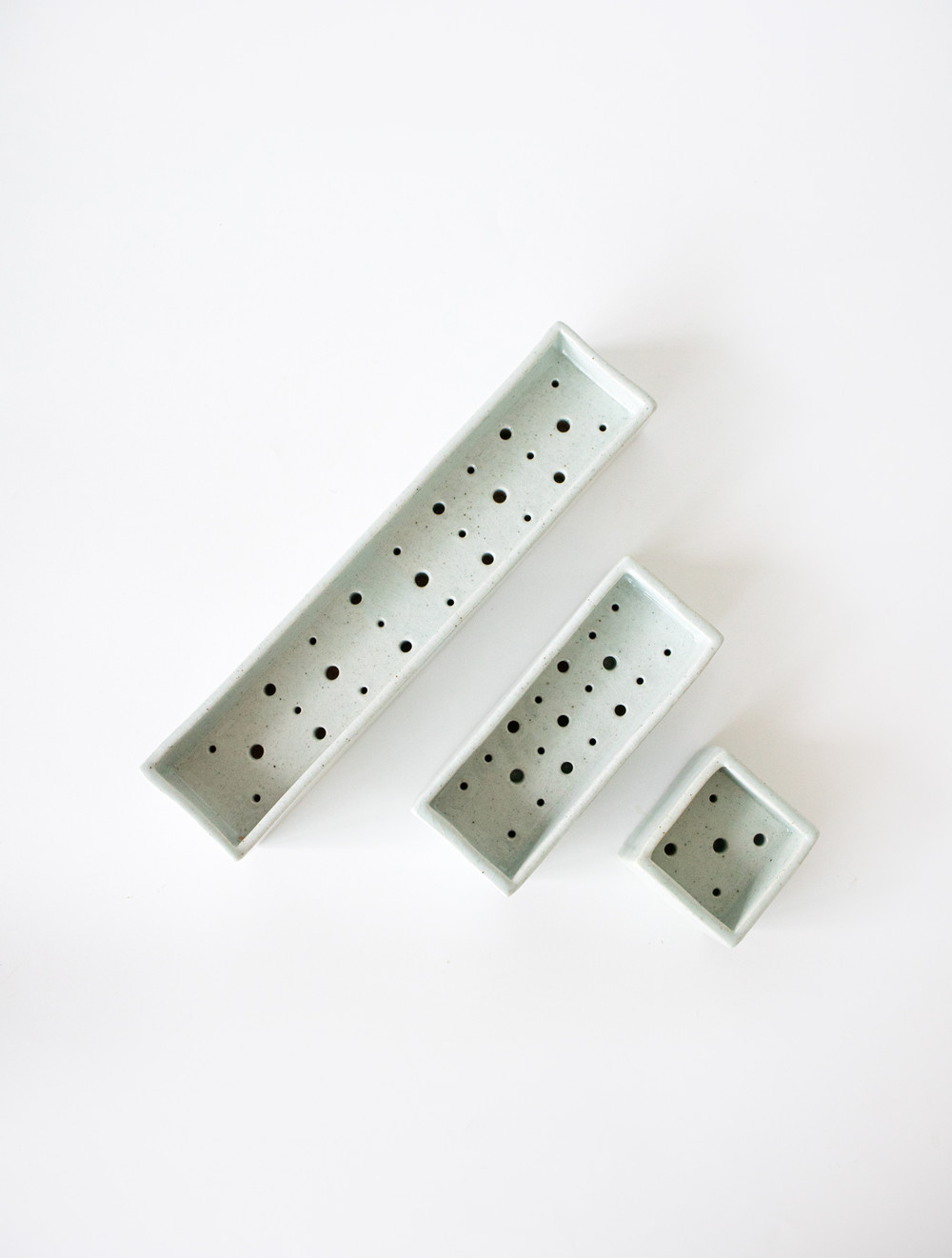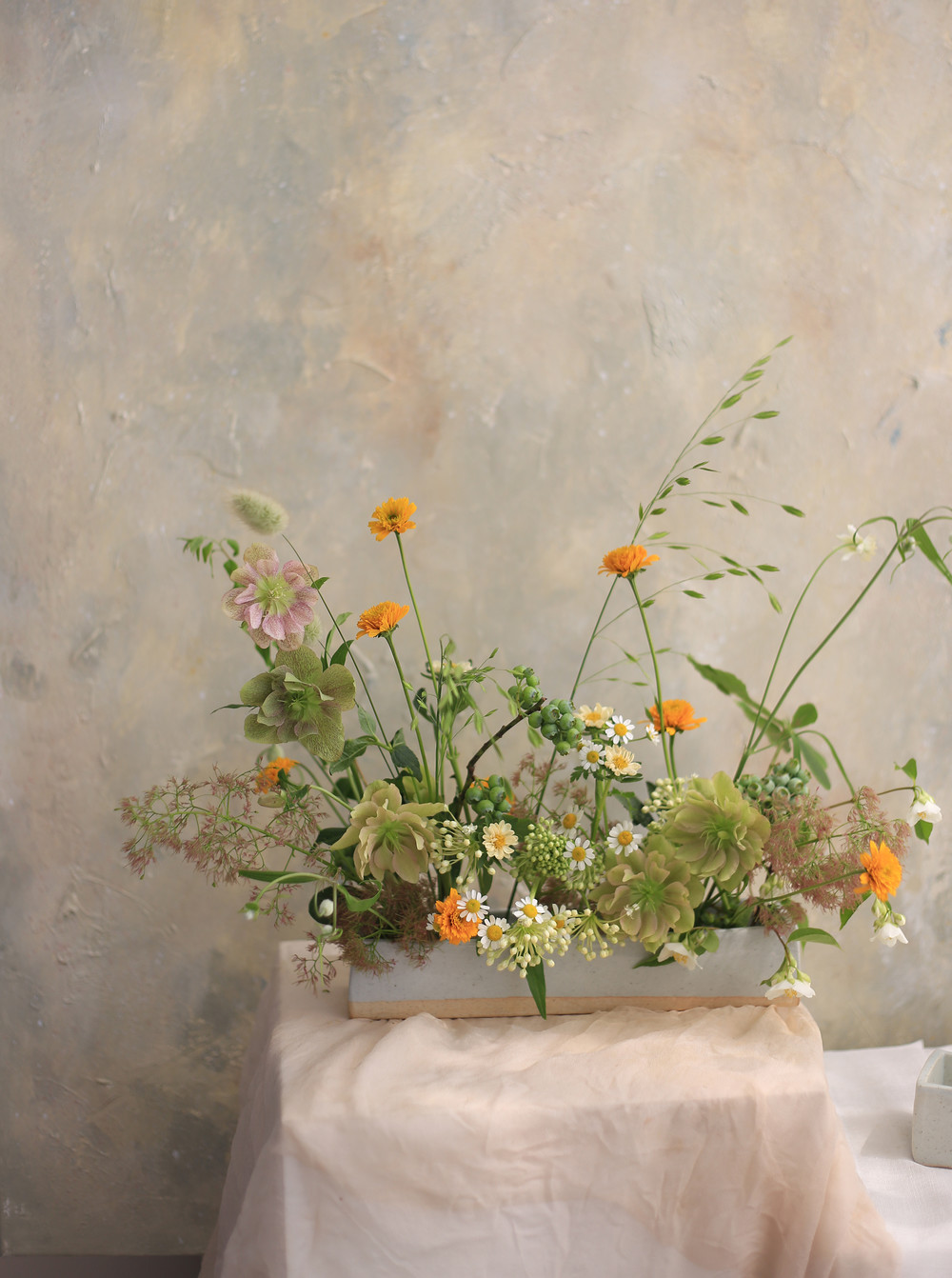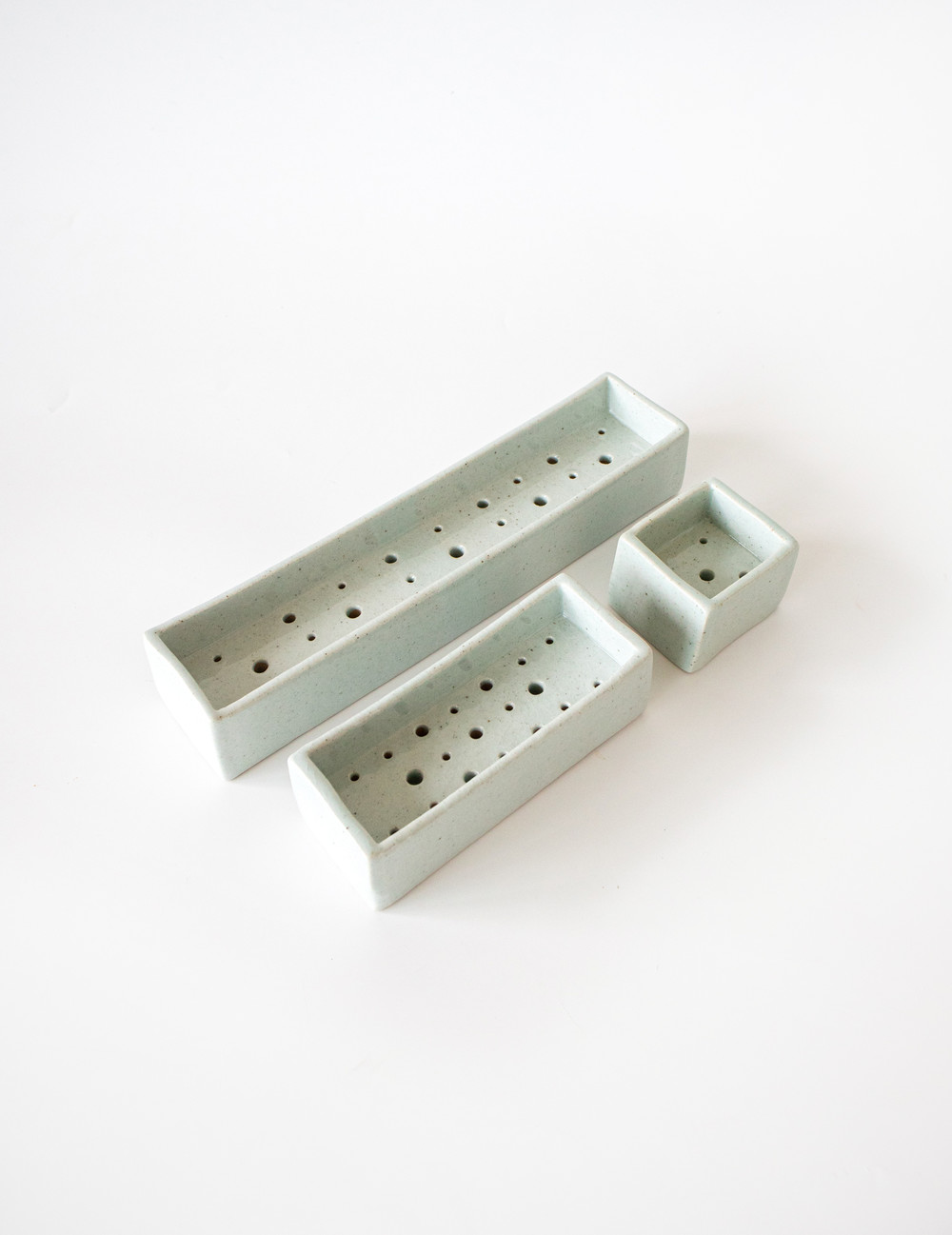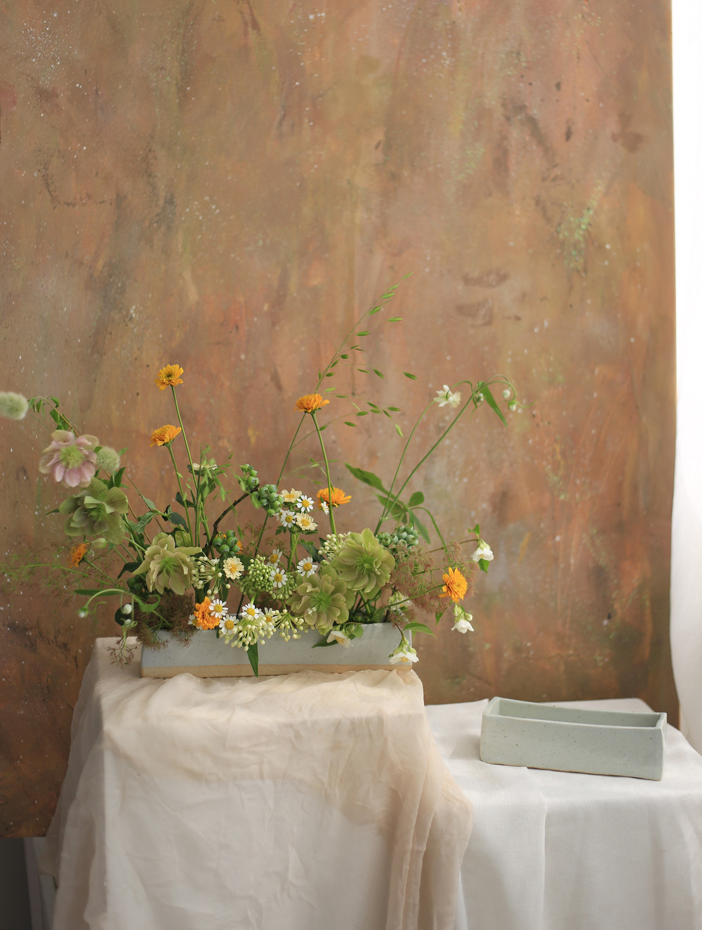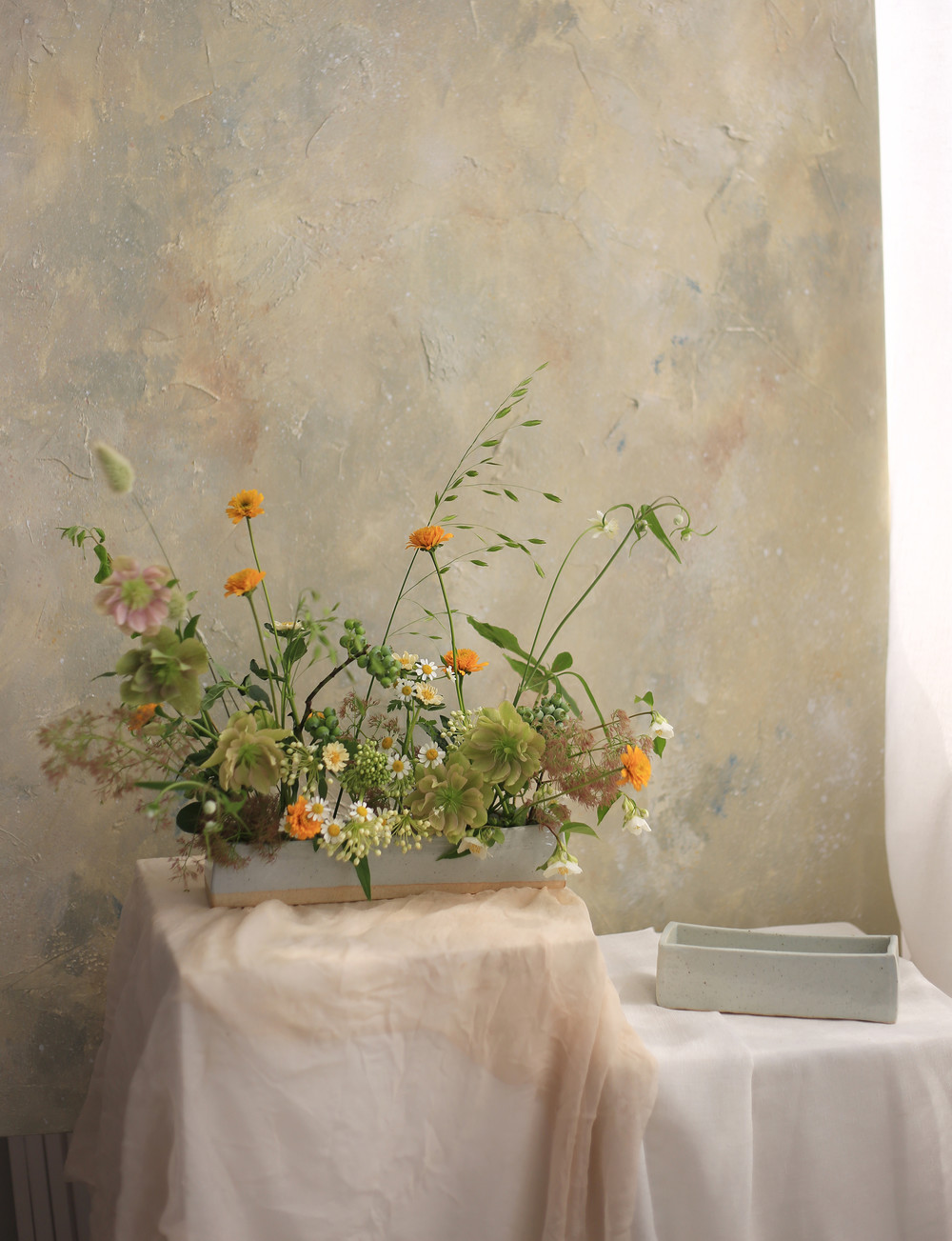 직육면체의 모양으로 판 작업으로 만들어져 기존 스테디 셀러인 원형 수반보다 더욱 손이 많이 가고 까다로운 공정을 통해 만들어집니다. S사이즈는 거의 정육면체에 가까우며 M 사이즈부터 2배씩 가로로 길어지며 무게 또한 묵직해집니다. 계절별로 변해가는 꽃과 풀을 높낮이를 달리하여 자유롭게 꽂아 연출해보세요. 공간을 더욱 멋스럽게 만들어줍니다.