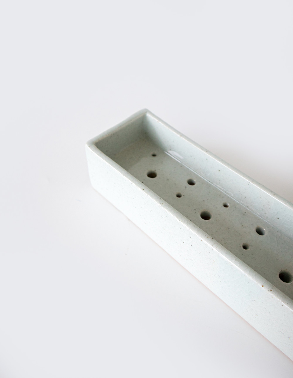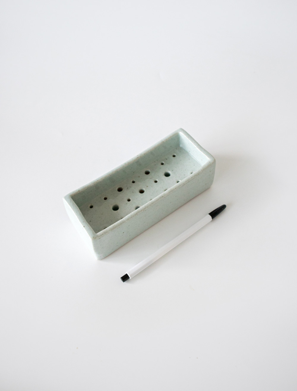 직사각형 모양의 친환경 수반입니다. 안쪽에 구멍이 뚫려 있어 플로럴 폼을 사용하지 않아도 꽃을 꽂을 수 있어 친환경적이며, 뾰족한 침봉 없이도 꽃을 꽂을 수 있어 안전하고 편리합니다. 물을 수반에 담고 구멍에 따라 꽃을 꽂으면 누구나 쉽게 멋진 꽃꽂이를 완성하실 수 있습니다.