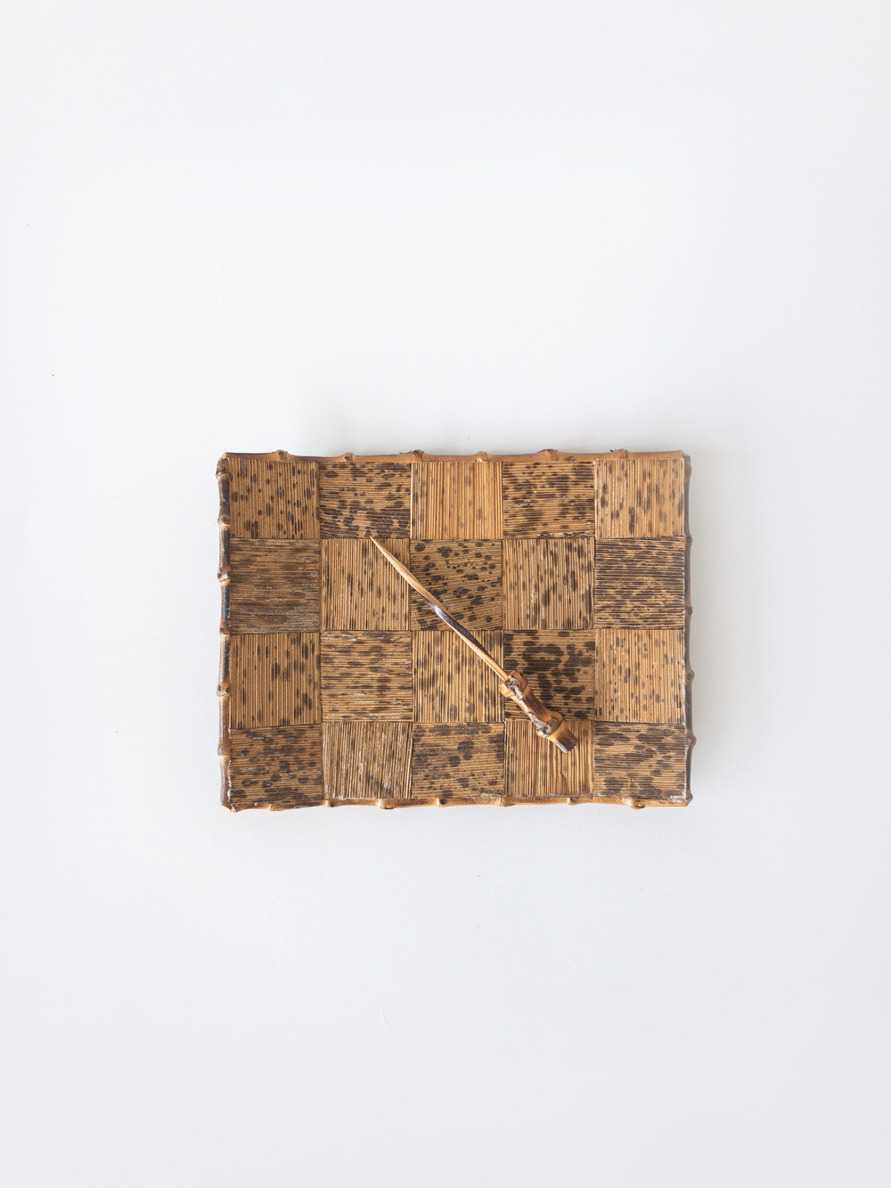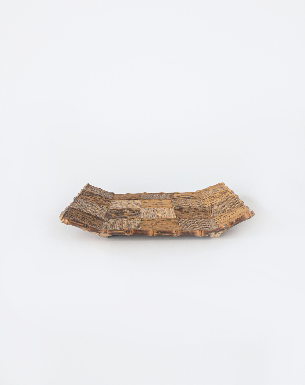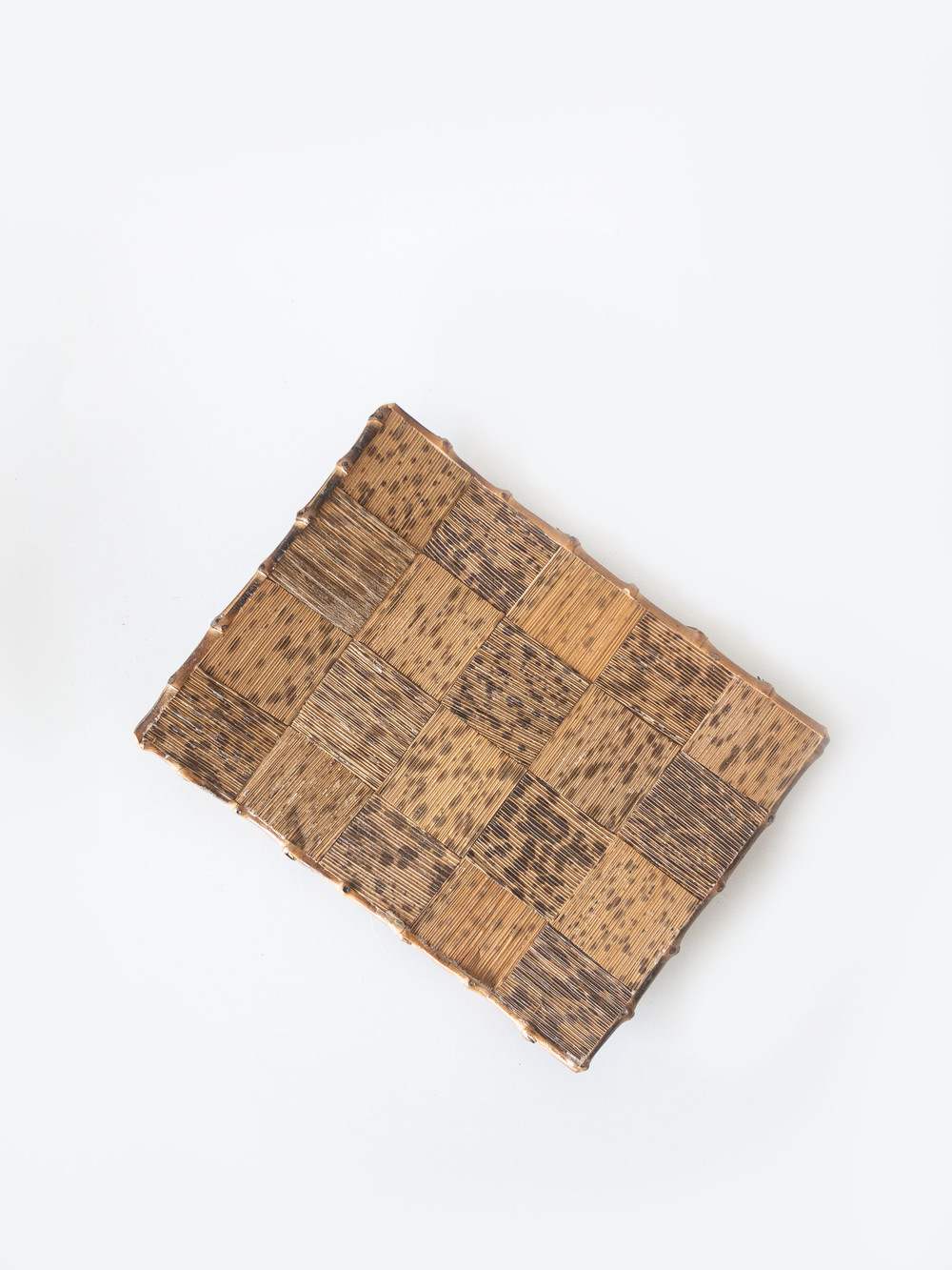 대나무로 만들어진 빈티지 다식 접시와 꽂이 세트입니다. 접시의 양 테두리에 대나무가 둘러져 있으며, 표면에는 바둑무늬로 점박이 있는 대나무의 결을 교차하여 붙였습니다. 그로 인해 만들어지는 무늬가 독특하고 재미있는 제품입니다. 찻자리를 가지실 때 간단한 다식을 올려서 사용하시면 좋은 제품으로, 찻자리에 따뜻한 분위기를 더해줄 것입니다. 5개의 제품 모두 천연 대나무를 사용하여 손으로 만들어졌기 때문에 그 모양과 무늬가 조금씩 다른 점 양해부탁드리며, 제품은 랜덤으로 발송됩니다. 접시1개와 꽂이1개가 한 세트입니다.