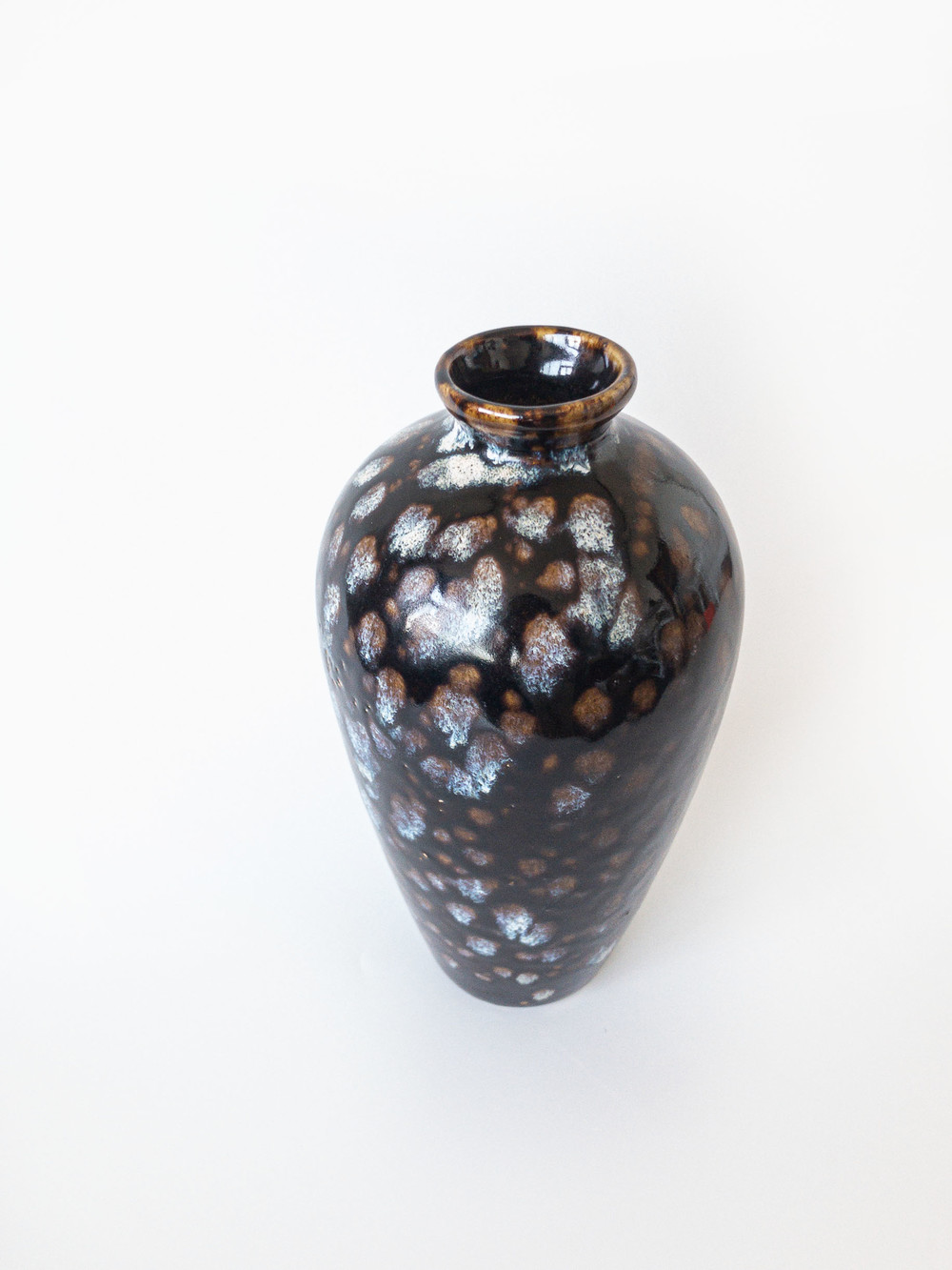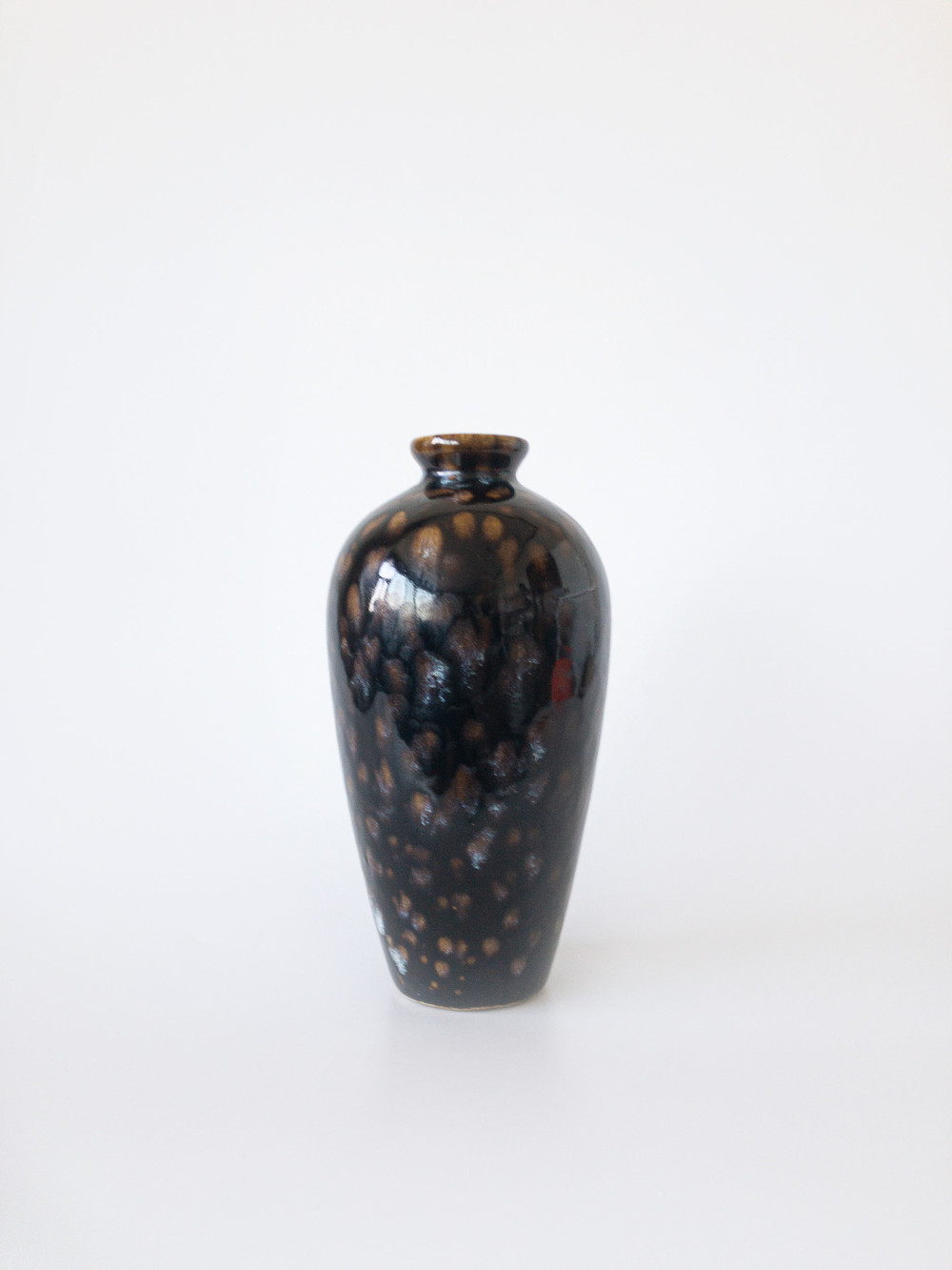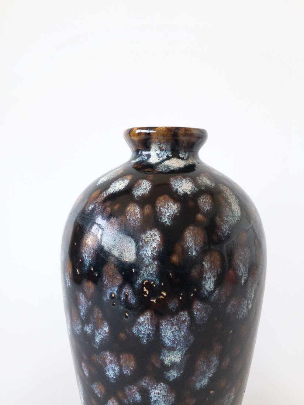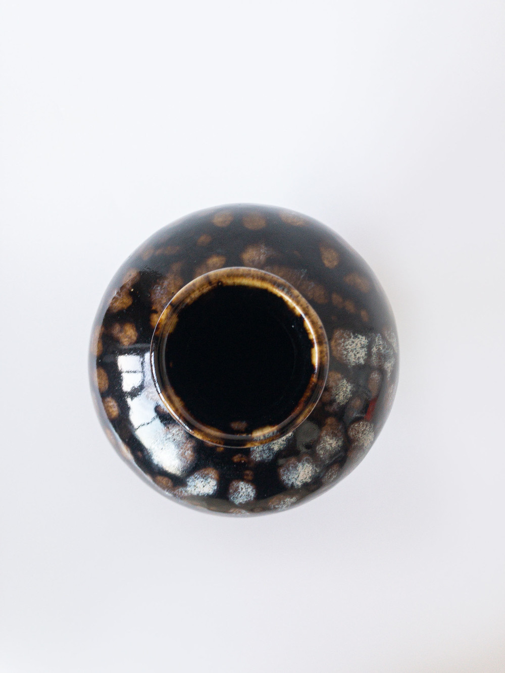 은하수를 떠올리게 하는 중국의 빈티지 화병입니다. 블랙의 베이스 컬러 위에 산발적으로 불규칙하게 뿌려진 도트컬러가 재미있는 문양을 만들어냅니다. 앞쪽과 뒤쪽의 무늬가 달라 놓는 방향에 따라 다른 무드를 연출합니다. 상세사이즈를 통해 화병의 크기를 확인해주세요.