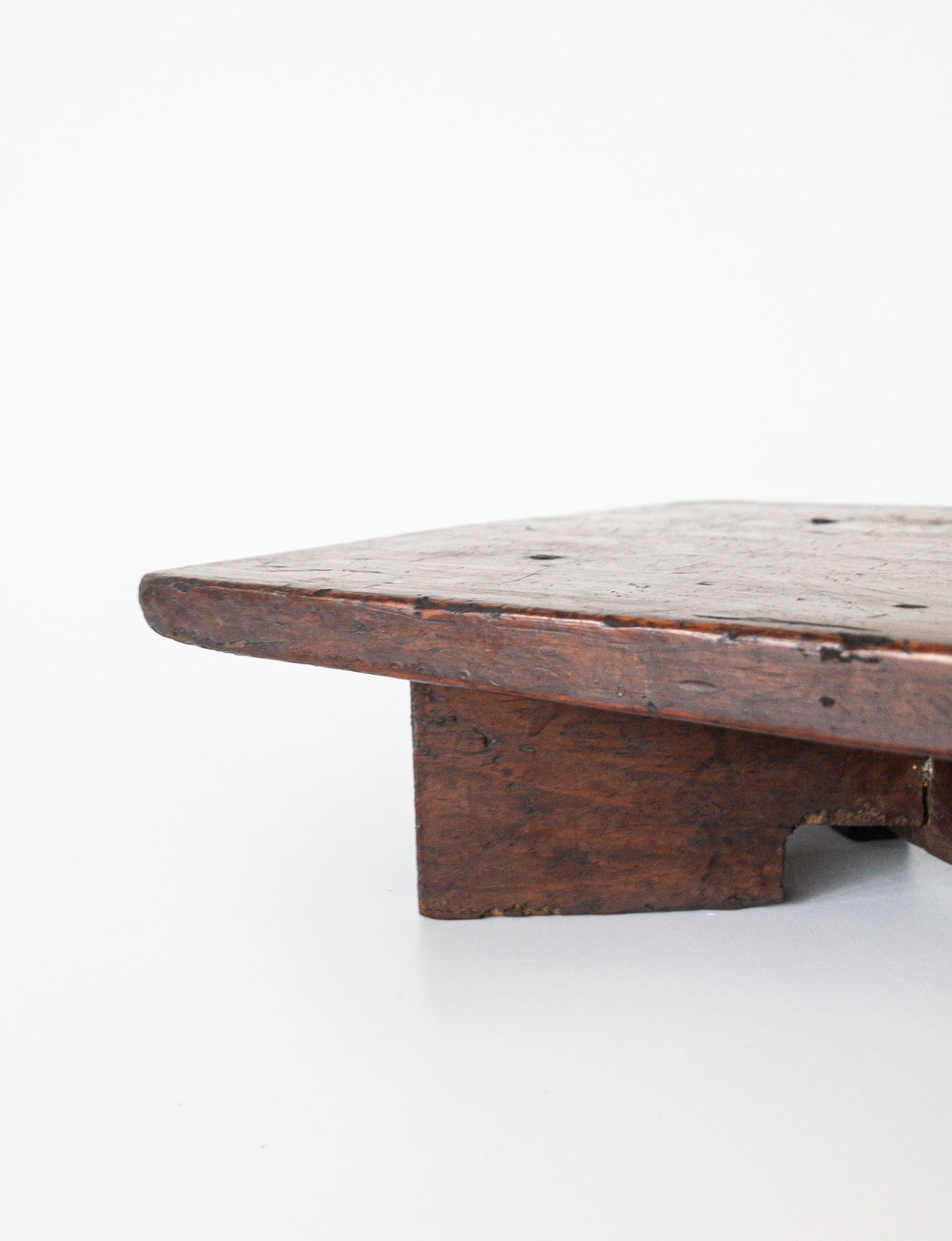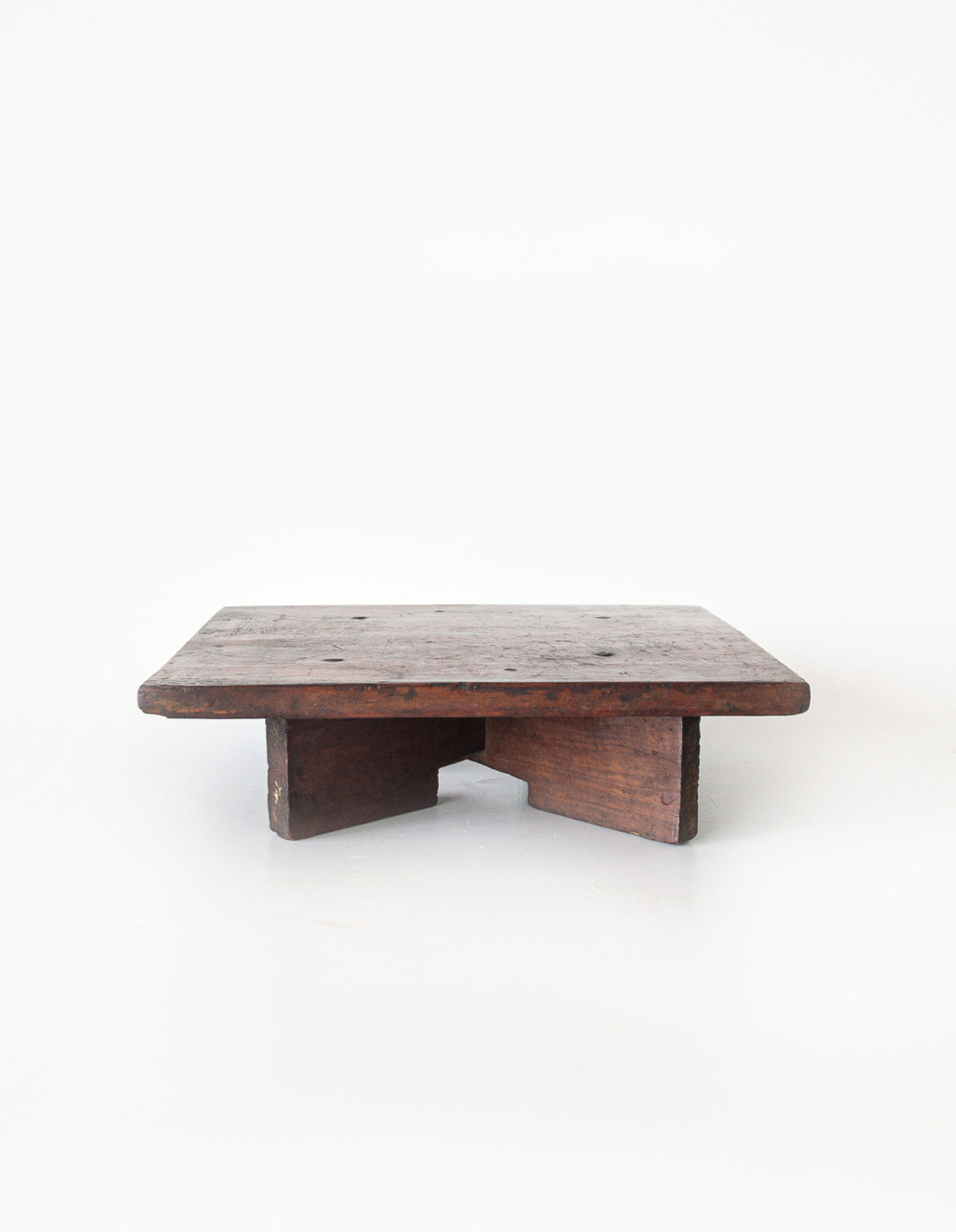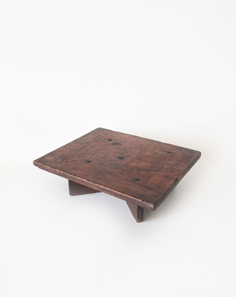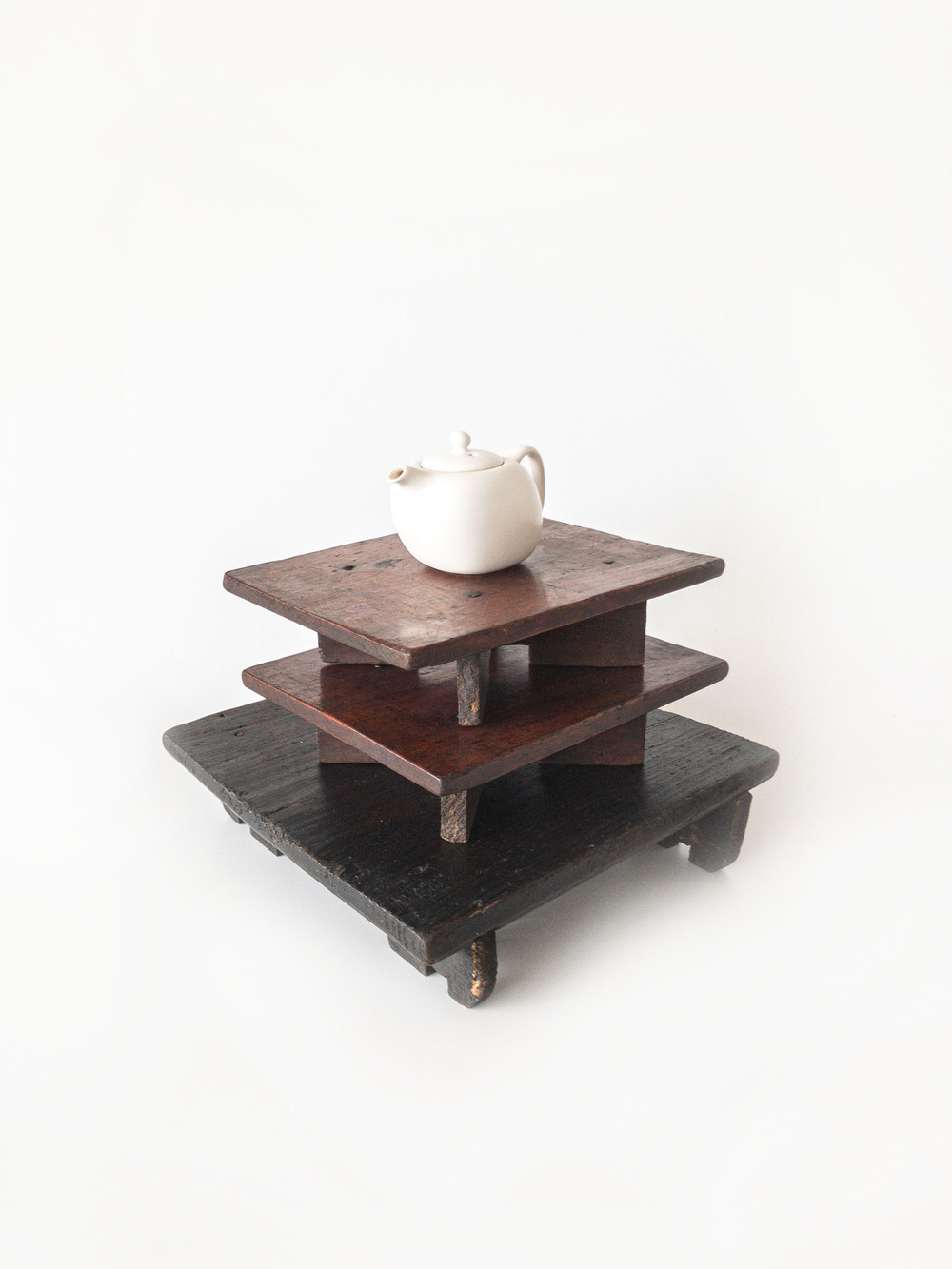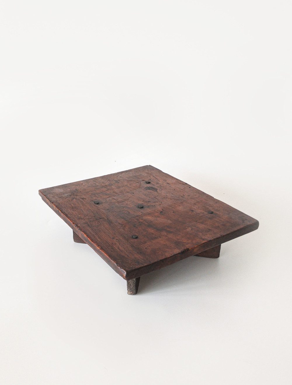 조선시대에 그릇으로 사용되던 낮은 굽이 달린 제기(편대)입니다. 고목재의 오래된 질감과 색감이 멋스러운 제품입니다. 이음매에는 모두 나무 못을 사용하였습니다. 나무못은 나무와 만나게 되면 팽창과 수축 과정을 통해 나무와 나무를 더욱 단단하게 엮어줍니다. 그렇기에 오랜 세월이 흘렀음에도 그 모양을 견고하게 유지하고 있습니다.