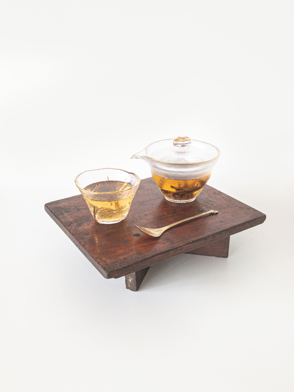 함께 연출된 상품은 Gold Rimmed Glass Easy Gaiwan과 Gold Rimmed Glass Teacup입니다.