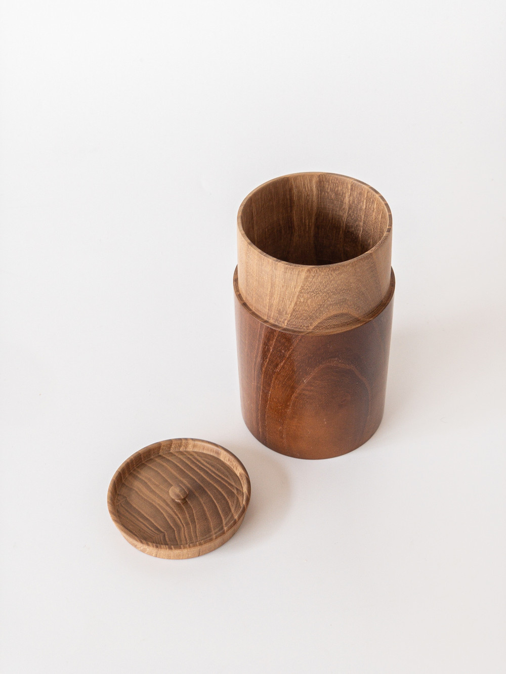 원목으로 만들어진 빈티지 차통입니다. 통 원목으로 만들어 고유의 나뭇결을 더욱 잘 느끼실 수 있습니다. 겉표면에는 은은한 광택이 돌며, 안쪽은 나무 그대로의 질감을 느끼실 수 있습니다. 찻잎을 보호하는 별도의 뚜껑이 있습니다. 모든 부분의 마감이 섬세하게 잘 되어있는 잘 만들어진 제품입니다. 상세사진을 통해 나뭇결의 아름다운 무늬를 감상해보세요.
