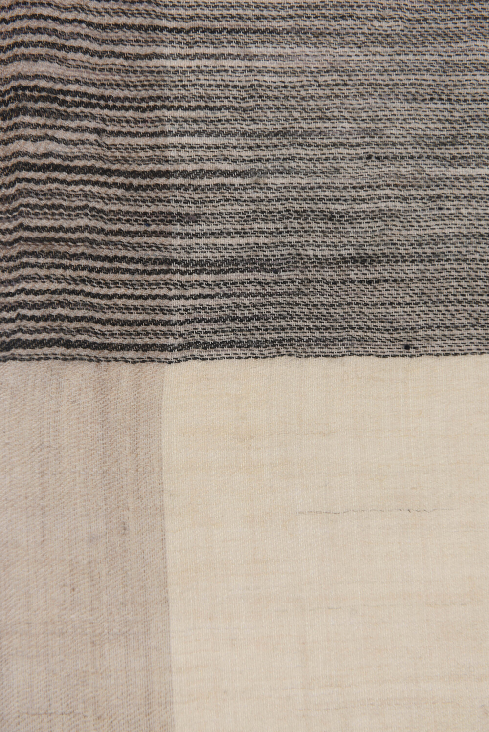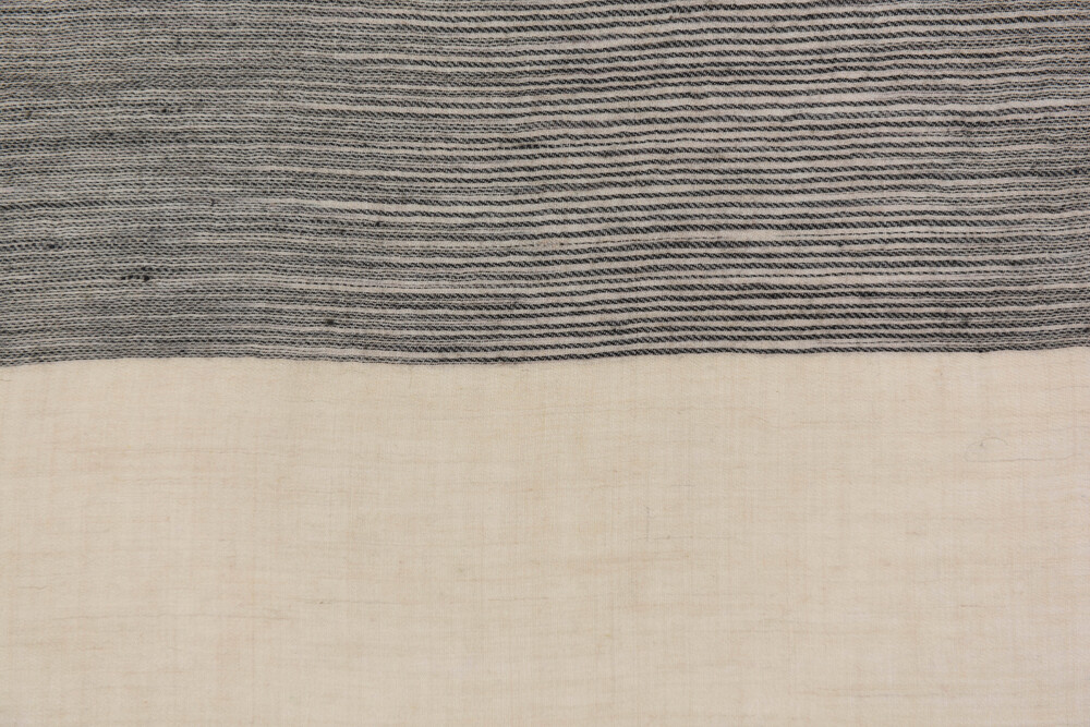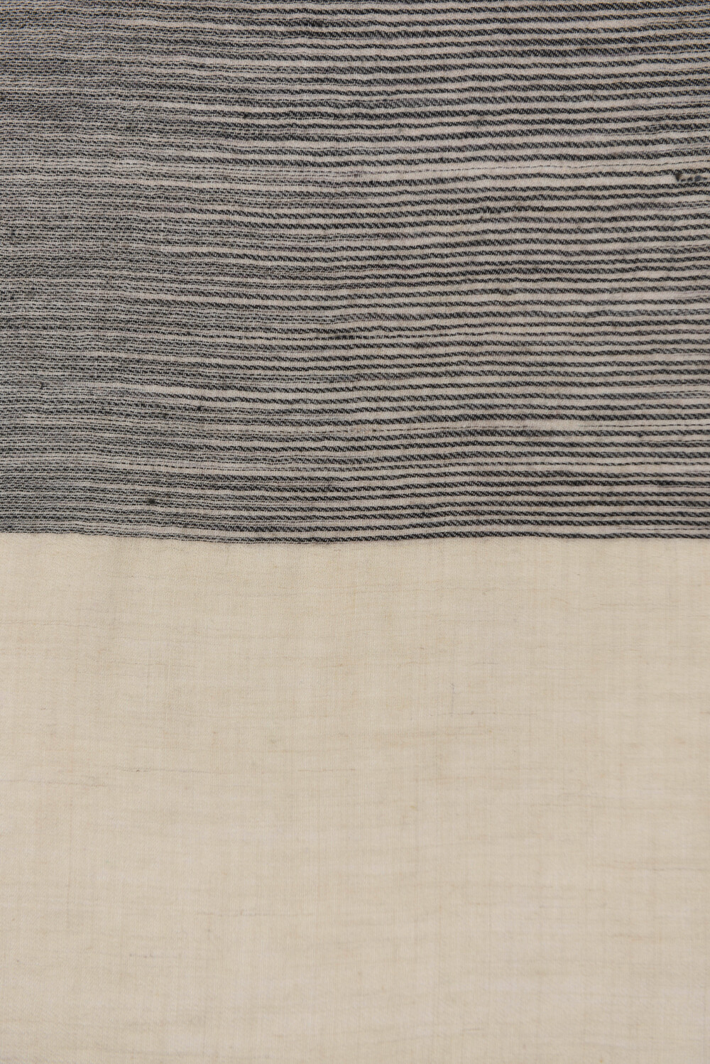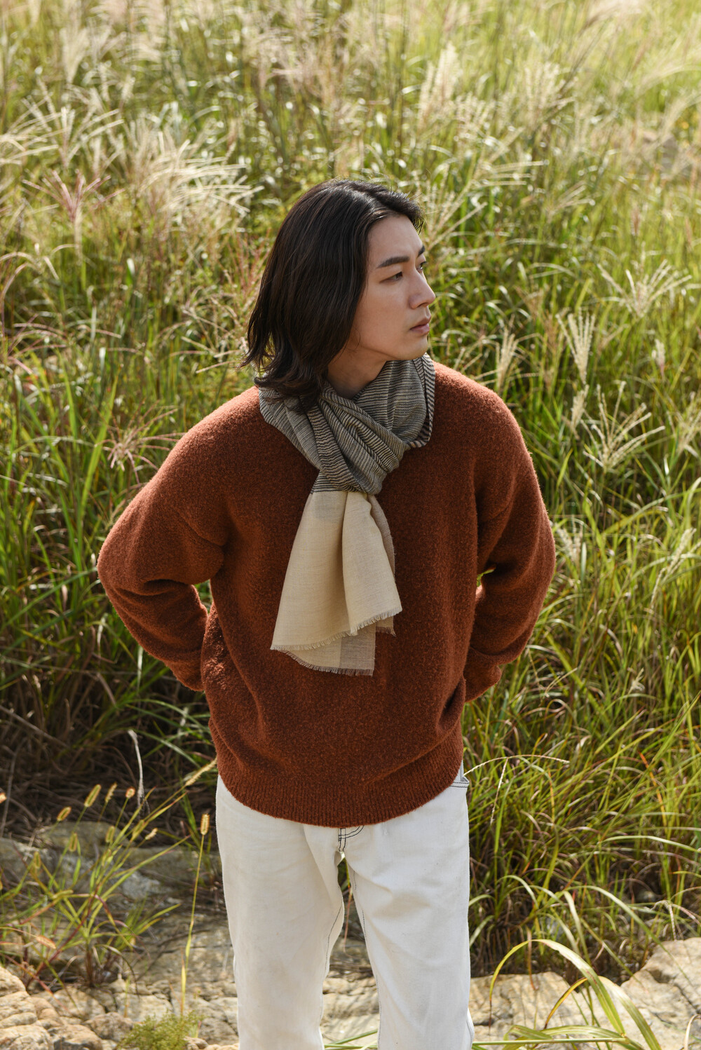 Stripe White는 짙은 브라운계열의 얇은 스트라이프 패턴과 Ecru 파시미나의 조합입니다.
