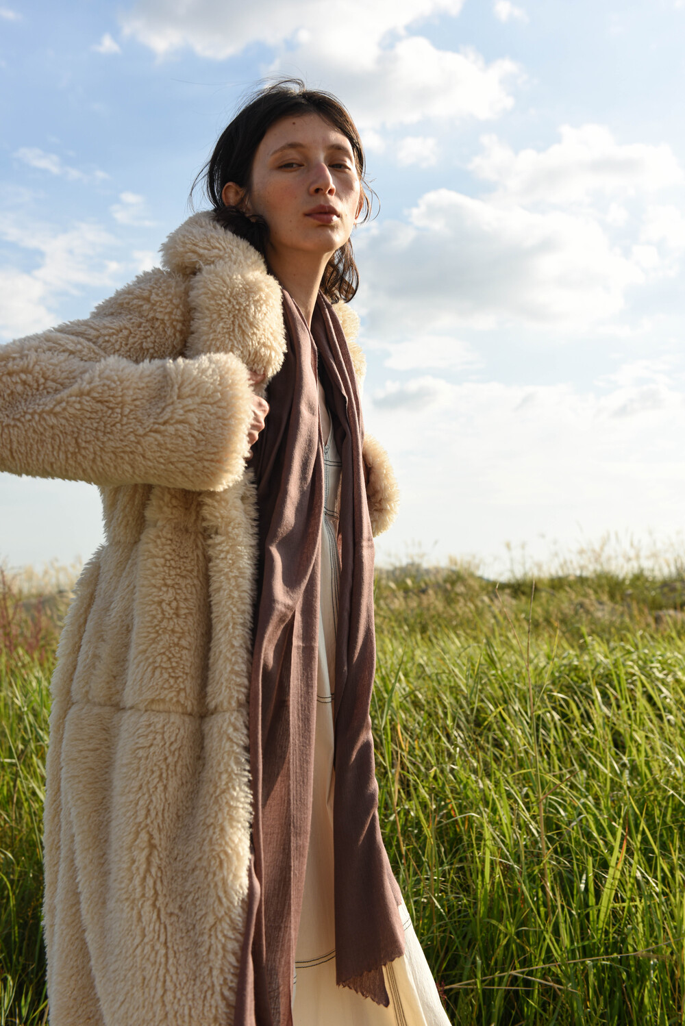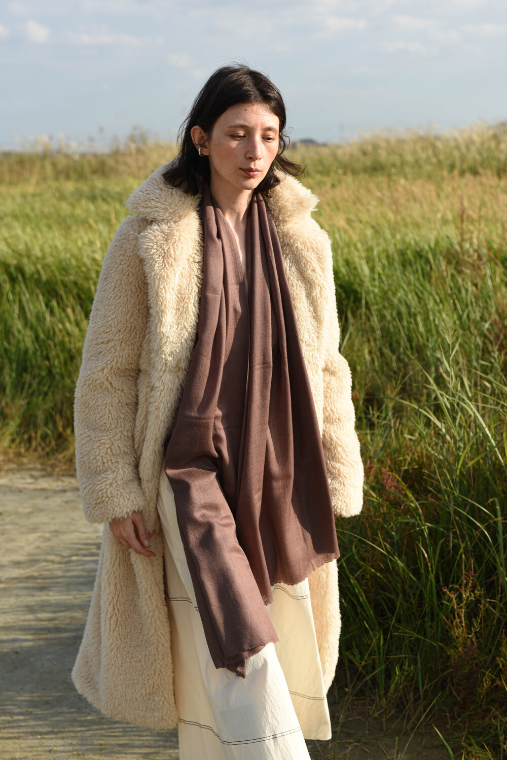 Will'o the wisp의 히말라야 고산지에서 서식하는 산양의 턱 밑에서 가슴을 지나 복부까지의 털을 사용한 파시미나의 에센셜 라인입니다. 햇볕을 맞지 않은 부드러운 털만을 모아 직조하여 매우 부드럽고 보온성이 뛰어납니다.