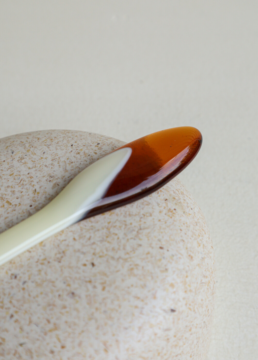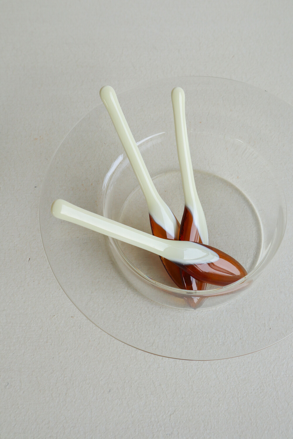 유리편집 김은주 작가의 색유리를 조합한 유리 스푼입니다. 평면적인 유리 스푼으로 요거트를 떠먹거나 머들러 등으로 다양하게 활용하실 수 있으며 그 자체로도 훌륭한 오브제가 됩니다. 아름다운 컬러감 덕분에 사용할 때 더욱 큰 즐거움을 느끼실 수 있습니다. 핸드메이드 제품으로 제품마다 모양과 크기 등이 조금씩 다릅니다. 세상에 하나뿐인 자신만의 작품을 소장하는 재미도 느껴보세요. 제품은 랜덤 배송됩니다.