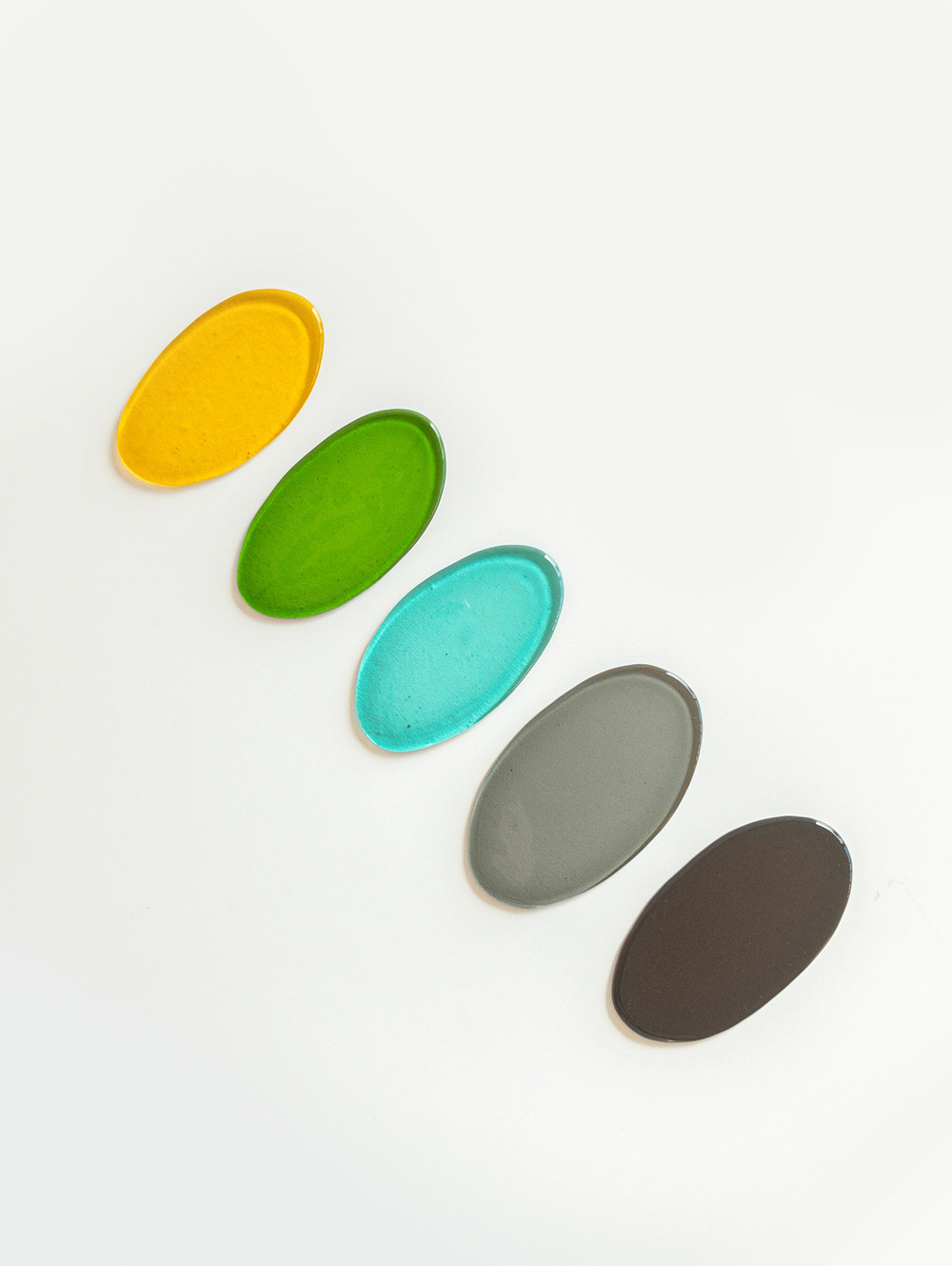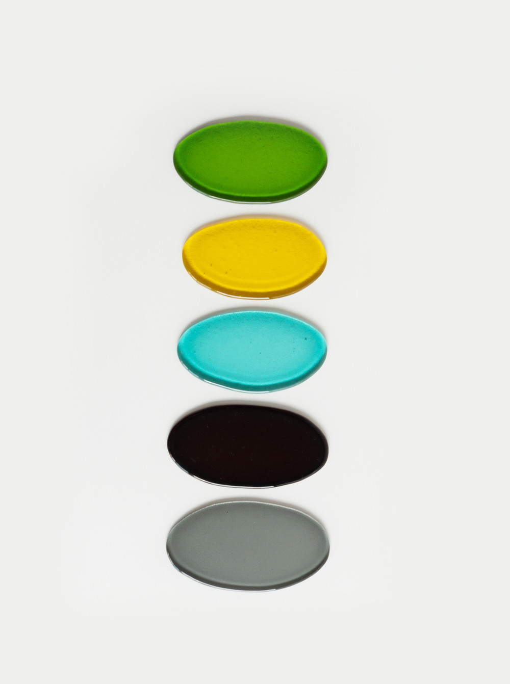 조약돌을 닮은 유리편집의 미니 색유리 접시(A)입니다. 미니 사이즈로 작은 핑거푸드 등을 올리는 그릇으로 사용하거나 수저 받침으로 사용하실 수 있습니다. 그 외에도 장신구, 소지품 등을 놓아 두는 등 다양한 방식으로 활용할 수 있는 오브제입니다. 색유리의 아랫쪽에는 요철이 있어 빛이 투과되면 더욱 영롱하게 빛이 납니다. 창가에 두어 스테인드글라스처럼 활용하셔도 좋습니다. 옵션에서 컬러를 선택하여 구매해주세요.