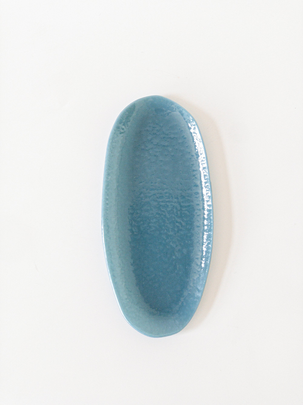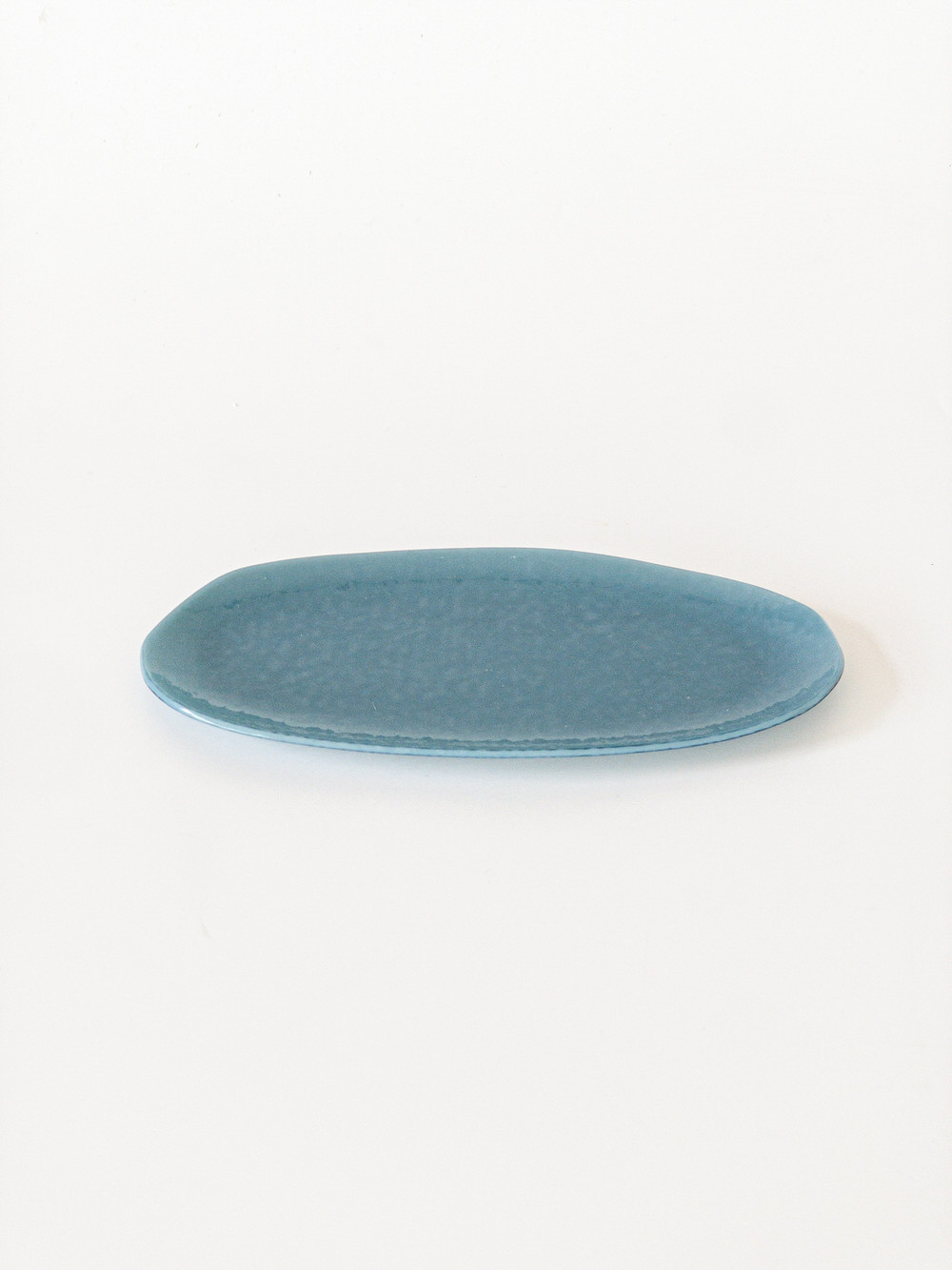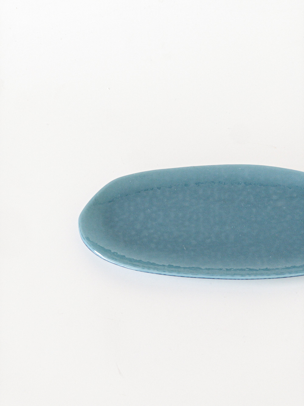 아름다운 컬러감이 돋보이는 유리편집의 타원모양의 작은 유리 접시입니다. 오묘한 클래식 블루컬러로 차분함이 느껴지며 동시에 깨끗하고 경쾌한 느낌이 듭니다. 손으로 만들어져 외곽의 자연스러운 굴곡이 있으며, 유리에 전체적으로 잔잔한 요철감이 있습니다. 오목한 형태로 작은 간식이나 찻잎을 담아내는 접시로 사용하시거나 악세서리나 소지품 등을 보관해보세요. 인센스홀더를 올려놓는 트레이 용도로도 다양하게 활용하실 수 있습니다.