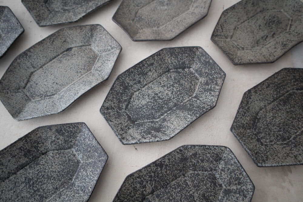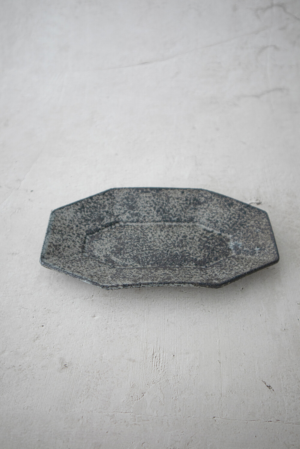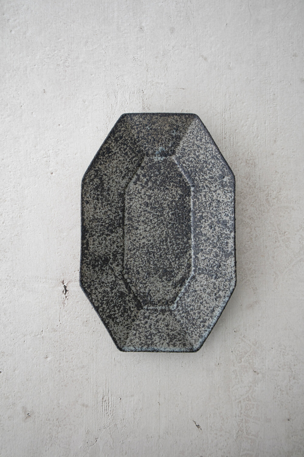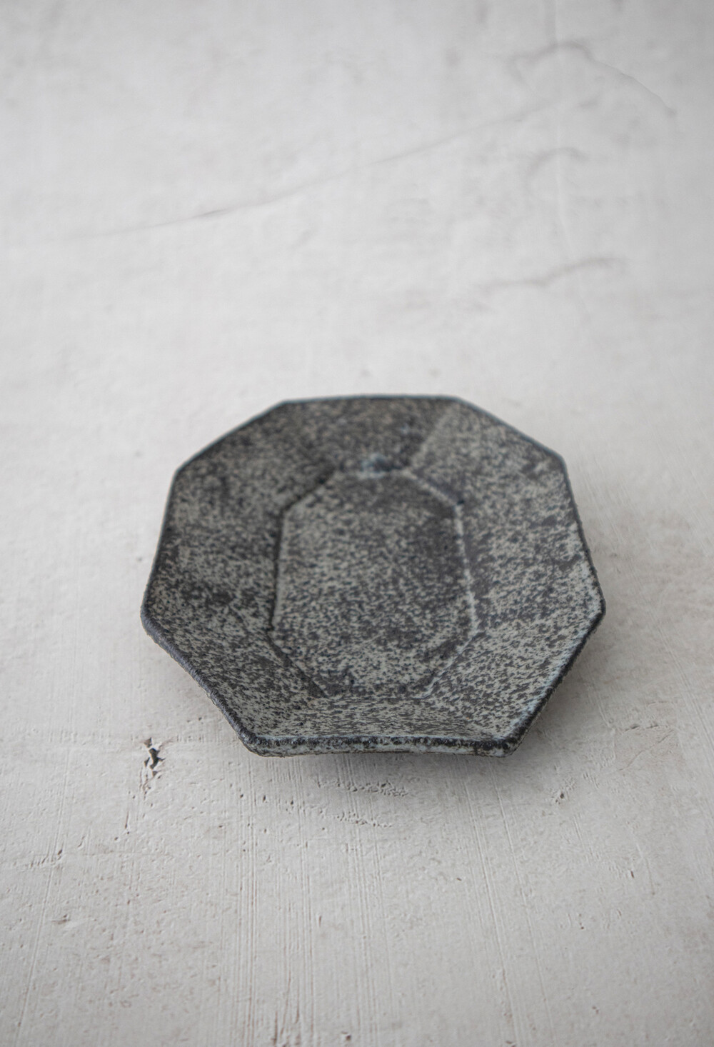 프루의 잔돌 팔각 접시 A형입니다. 잔돌 시리즈는 강가에 모여진 자잘 자잘한 돌멩이들을 형상화하여 제작되었습니다. 흙을 밀고 두들겨 얇게 여러 번 분장하여 만들어진 잔돌 접시는 강가에 모여진 자잘 자잘한 돌멩이들을 형상화하여 제작된 하나의 오브제입니다. 까슬까슬한 질감을 가지고 있으며 어둡고 밝은 돌멩이들의 형상이 자연스럽게 보입니다. 기본 온도보다 낮게 소성하여 식기보다 오브제로서의 역할이 알맞습니다. 같은 가마에서 나왔더라도 제품마다 컬러와 질감이 조금씩 다르며, 입고시마다 달라질 수 있습니다. 상품은 랜덤 발송됩니다.
