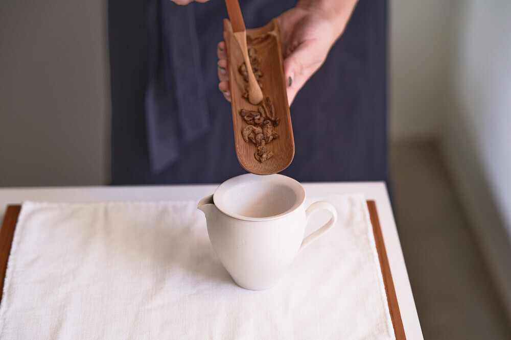 따뜻한 물을 끓여 < 우엉의 근본 >을 느긋하게 우려 마시는 차의 시간을 통해 자신의 마음을 잘 살피고
