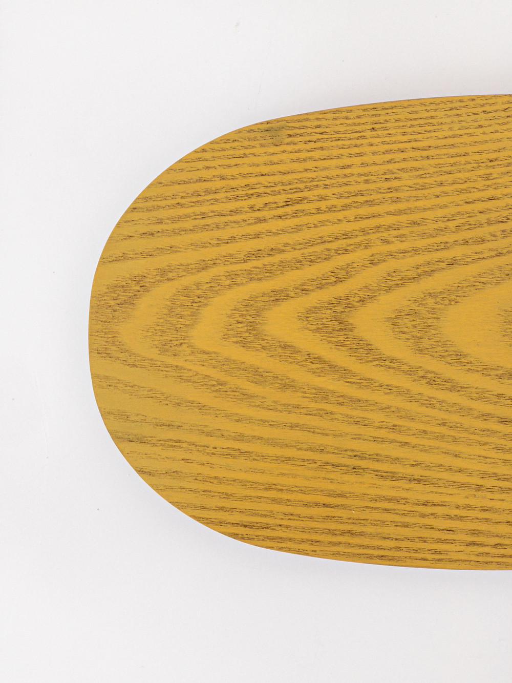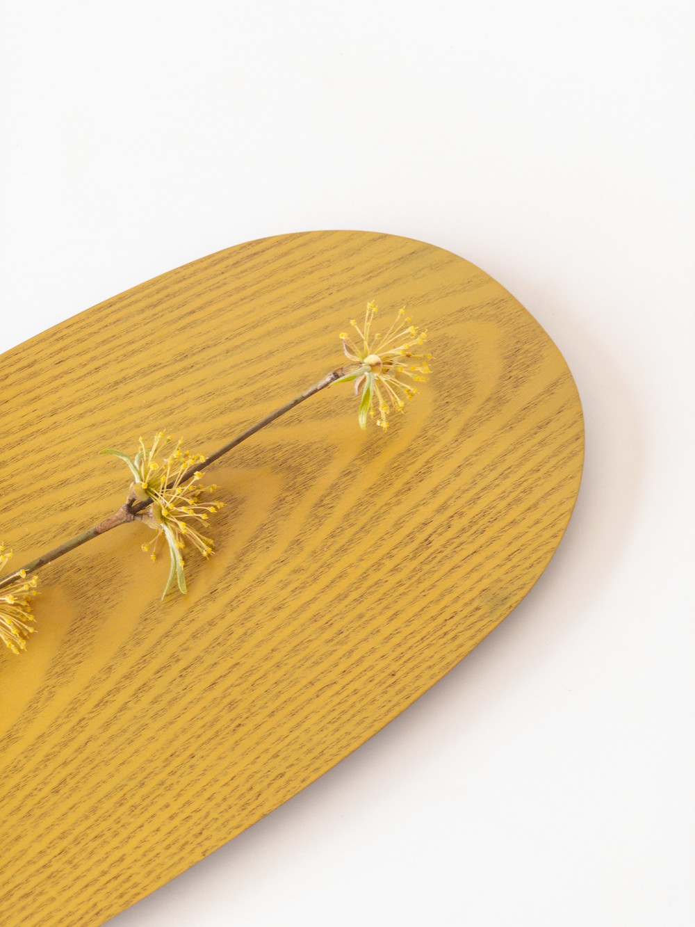 오트오트의 옻칠반 M사이즈 타원형 옐로우입니다. 오트오트의 옻칠반은 무늬목 위에 안료를 섞은 정제 옻칠을 여러 번 바르고 닦아내어 얇고 단단하게 발린 색옻칠 위로 자연스러운 나뭇결이 비쳐 보입니다. 오트오트의 제품들은 작은 디테일부터 마감까지 옻칠로 정성스럽게 마무리하며, 여러 차례 바르고 닦아내어 충분한 생활방수가 가능합니다. 과일이나 다과를 바로 올려 접시를 사용하거나 컵이나 접시 등을 올려 트레이로도 사용하실 수 있습니다. M사이즈는 S사이즈의 옻칠반과 다양하게 컬러를 조합여 사용하시면 더욱 아름답습니다. 심플하고 즐겁게 일상에서 건강한 옻칠제품을 경험해보세요.