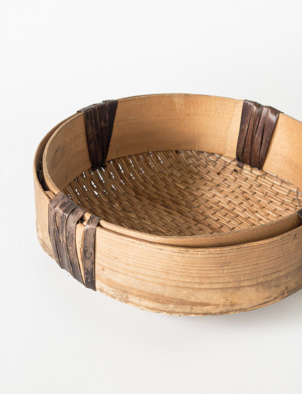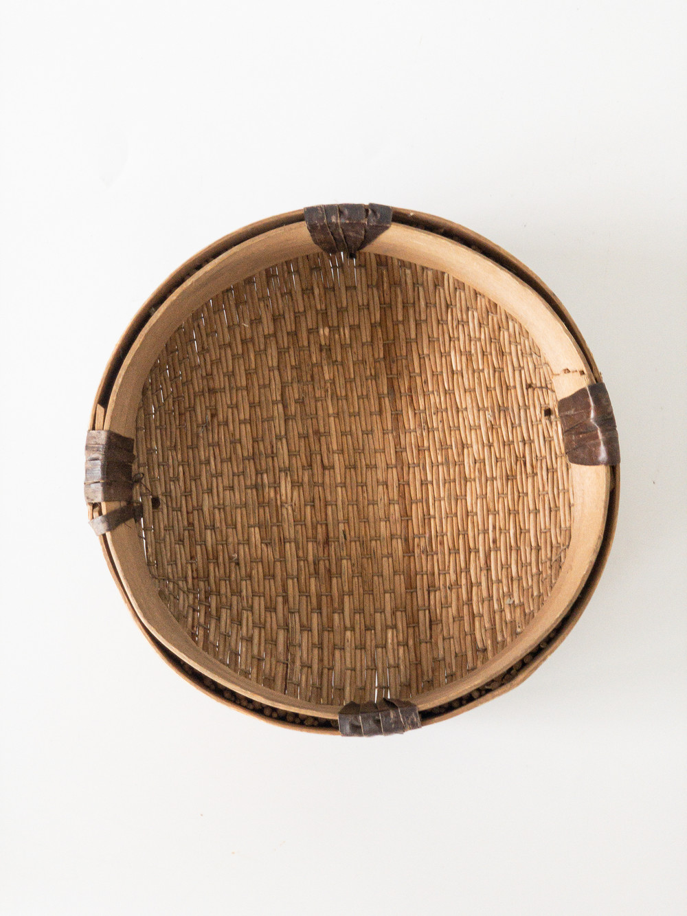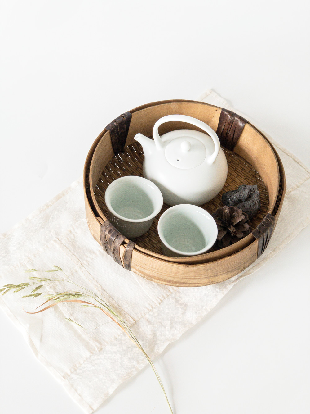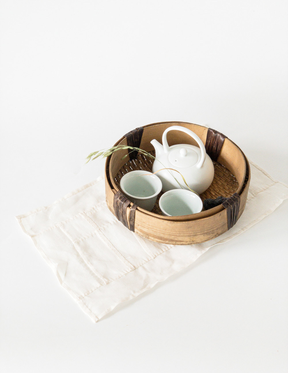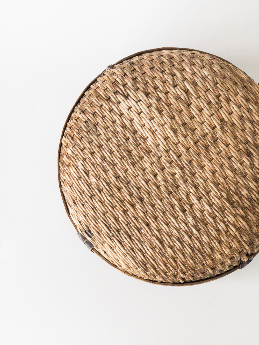 옛날에 도시락통으로 사용되었던 원형 모양의 동고리입니다. 동고리란 버드나무 줄기나 대나무를 잘게 쪼개어 엮어 형태를 잡은 후, 옆에넓은 나무판을 안팍으로 대어서 사방을 솔뿌리로 꿰매어 완성한 것입니다. 나무 줄기를 엮어 만들어 틈새로 공기가 통과해 밥이 쉽게 상하지 않았다고 합니다. 이 동고리는 버들로 만들어져 버들고리라고도 불립니다. 옛 것이지만 그 형태가 잘 보존되어있으며, 세월의 흐름이 멋스럽게 묻어나는 제품입니다. 기존 소개했던 바구니보다 큰 사이즈로 소중한 다관, 찻잔, 다완 등을 보관해 두시는 용도로 사용하시길 추천드립니다. 야외 찻자리에서도 자연스럽고 정겨운 분위기를 연출해주는 트레이로도 활용하실 수 있습니다.